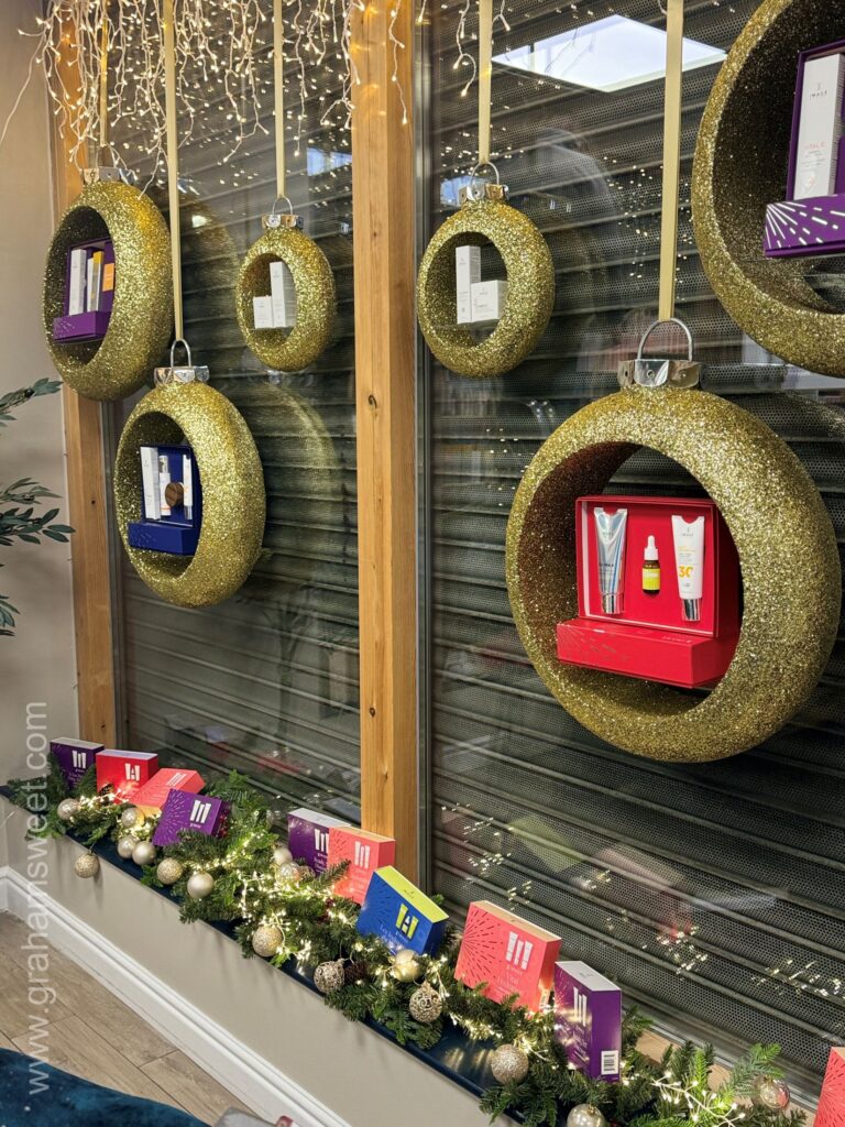 We’re always delighted to see our work featured in creative displays, and these photos from Jardines, a luxury aesthetic skin and beauty clinic in Dublin, are a wonderful example. Their elegant Christmas window from last Christmas, which incorporated our VM Curved Bauble Shelves went on to win an award — and it’s great to have played a part in its success. Thank you for sharing the great photos with us!