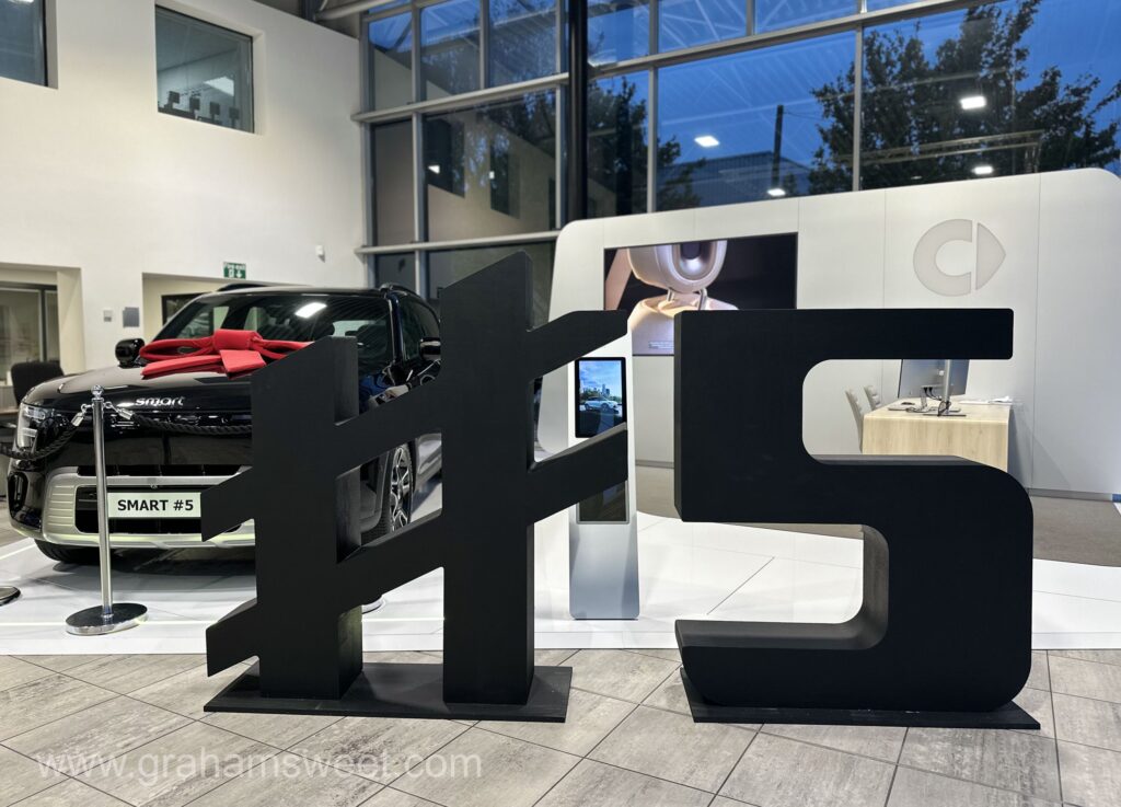 Manufactured from polystyrene and fairly lightweight, the letters were easy to position in the showroom. Finished in black and made in the client’s own font, they were a great branded addition to the launch and delivered a strong visual impact.