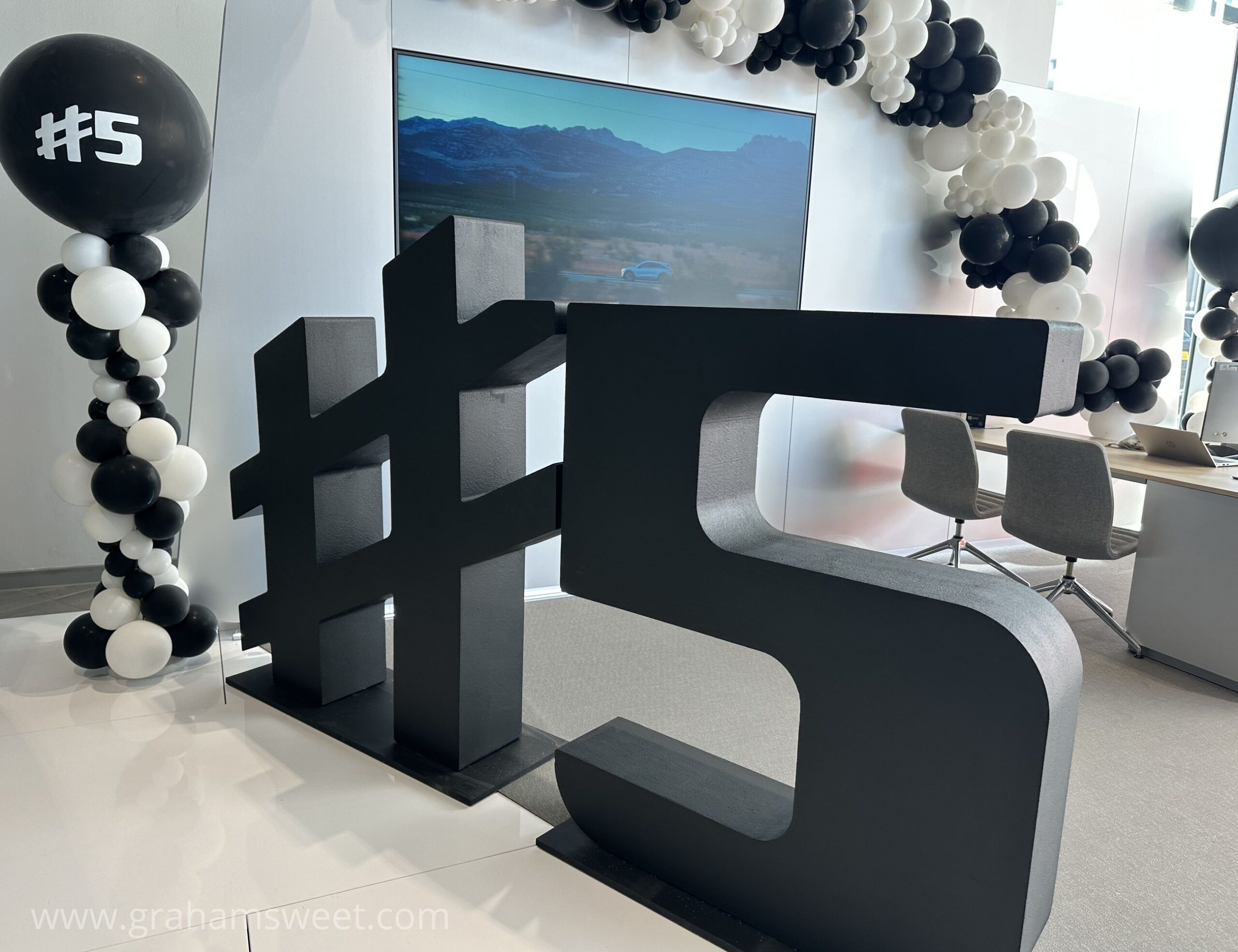 Manufactured from polystyrene and fairly lightweight, the letters were easy to position in the showroom. Finished in black and made in the client’s own font, they were a great branded addition to the launch and delivered a strong visual impact.