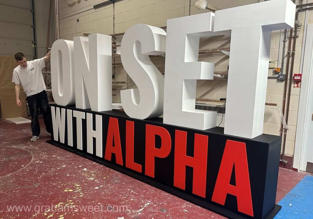 Earlier this month, we created these large letters for Alpha. The letters were used for an outdoor live filming event “On Set With Alpha” for the new series for the Alpha Course. At over 2m high, it was sure to make an impact.