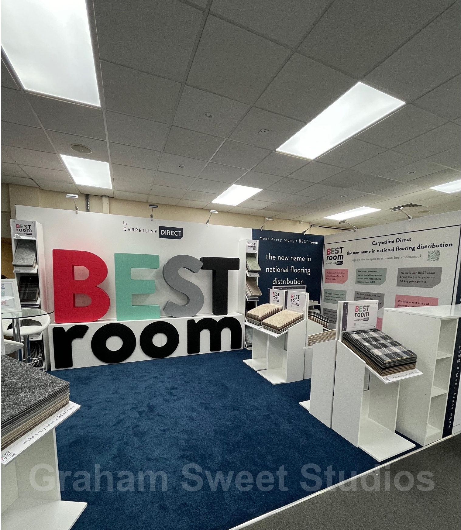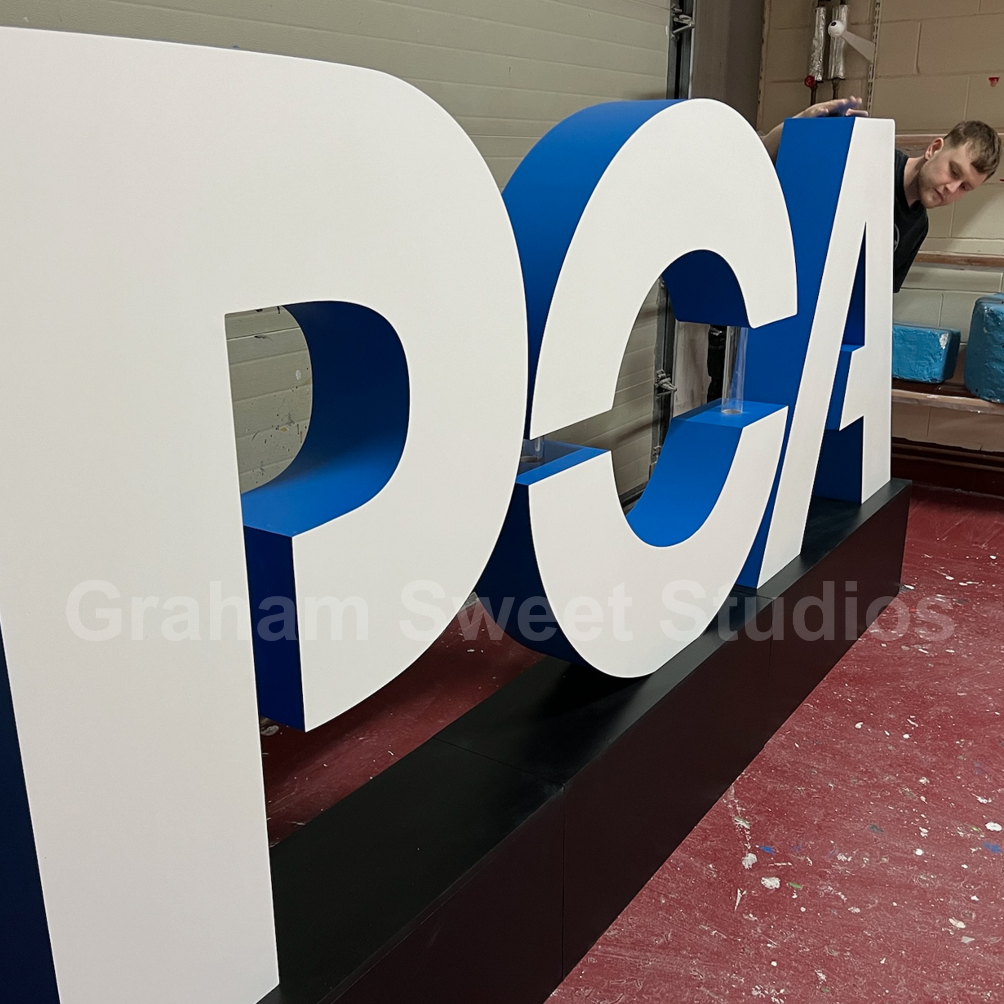 We manufacture 3D letters in a range of materials to suit different briefs and budgets. Expanded polystyrene is a popular option for exhibitions as it is lightweight and flame-retardant, making it ideal for large letters and logos. Where additional strength or a sharper finish is required, polystyrene letters can be supplied with MDF or acrylic faces, with protective coatings added for improved durability. XPS offers a denser alternative where smoother finishes and finer detail are needed.