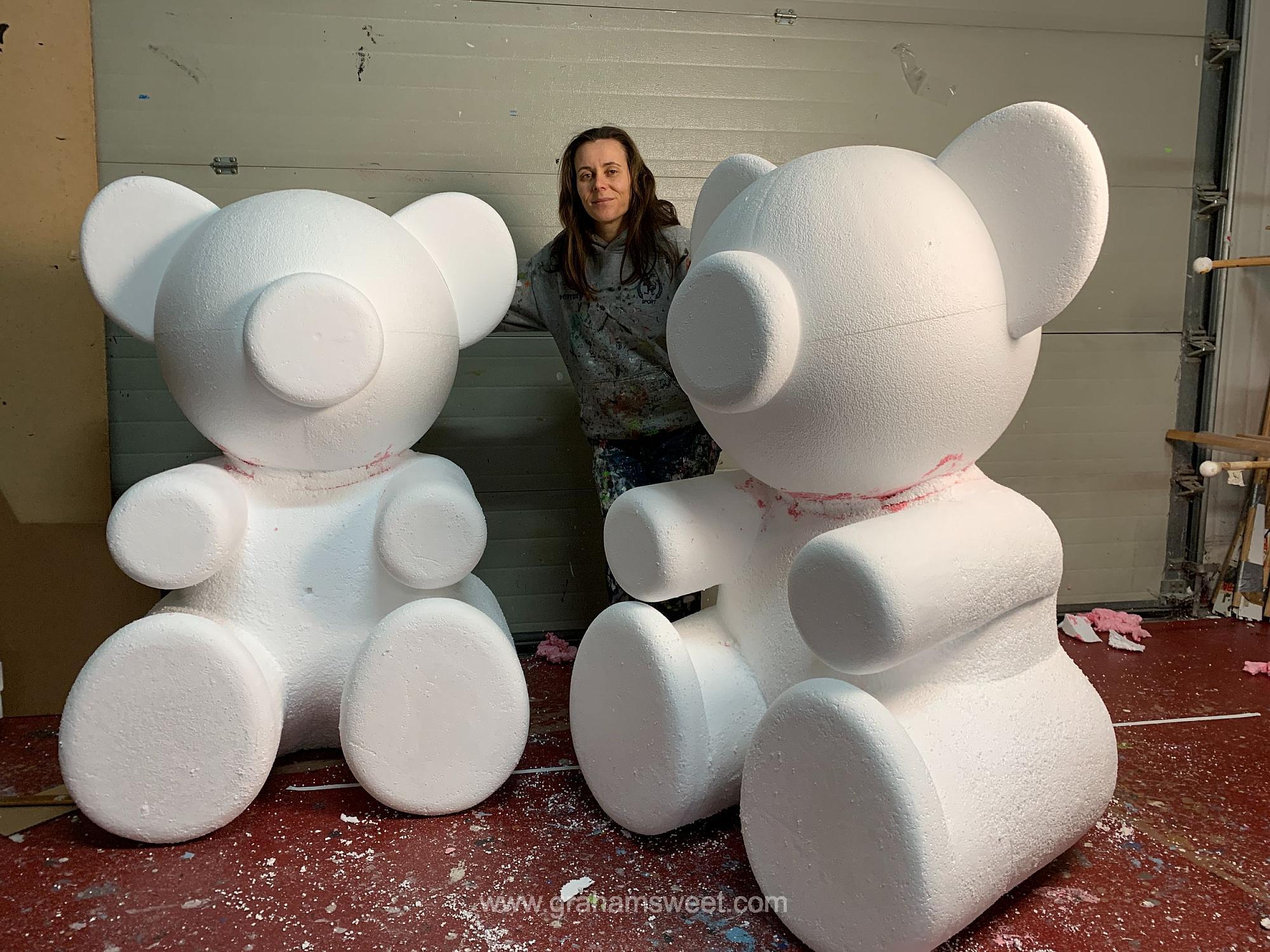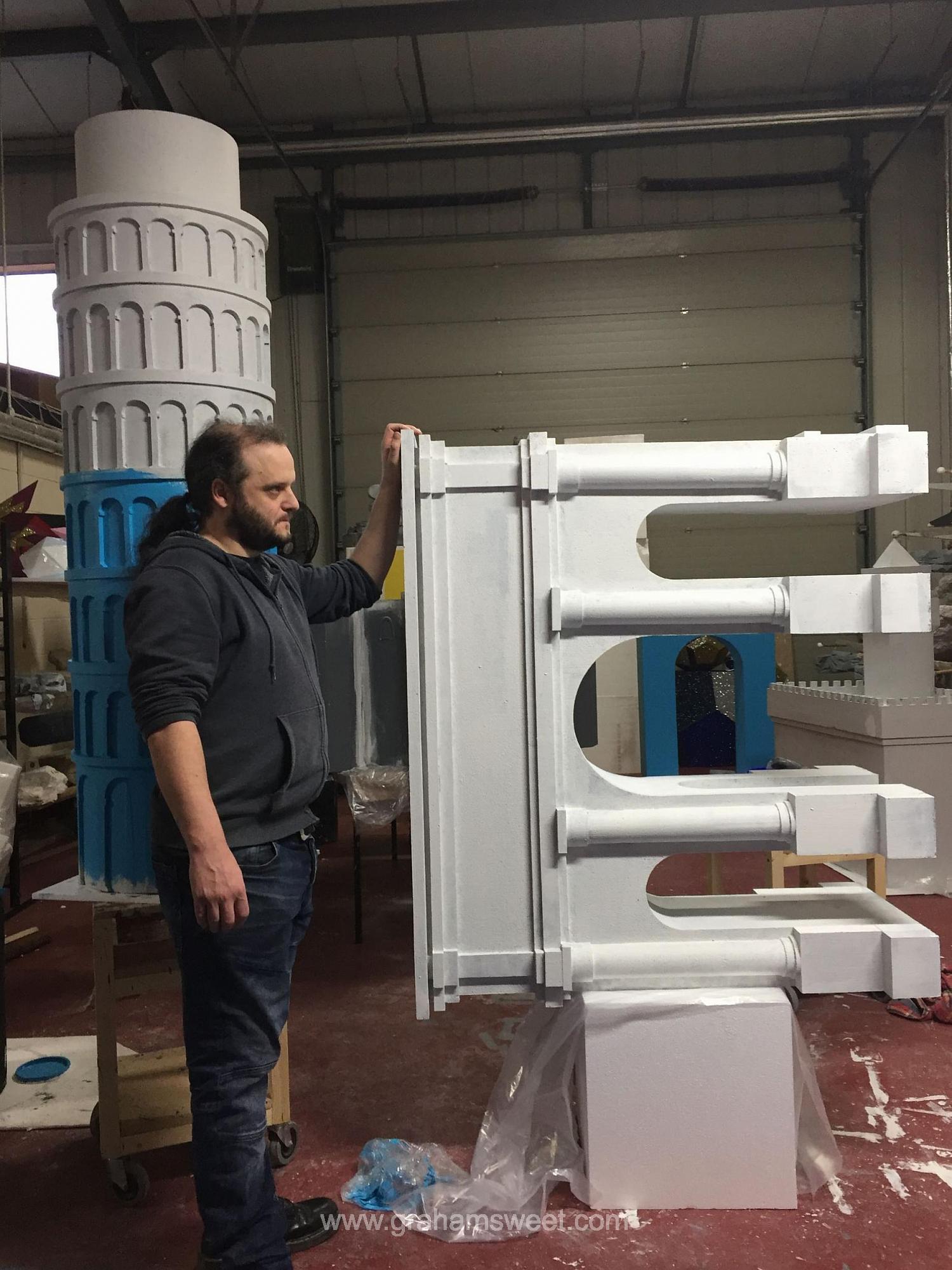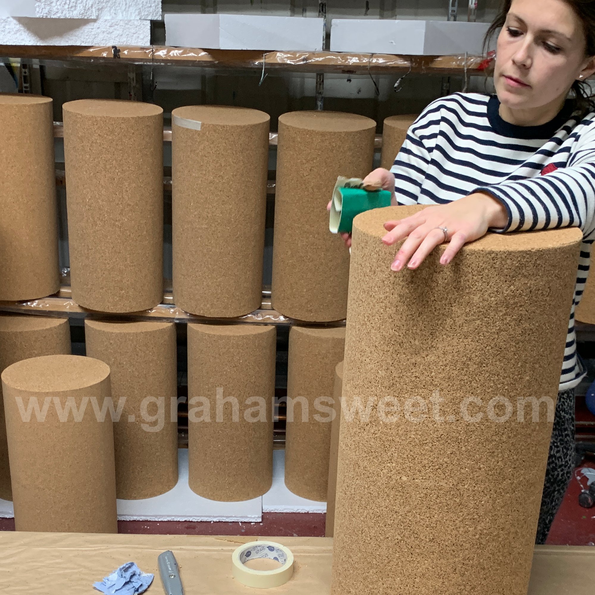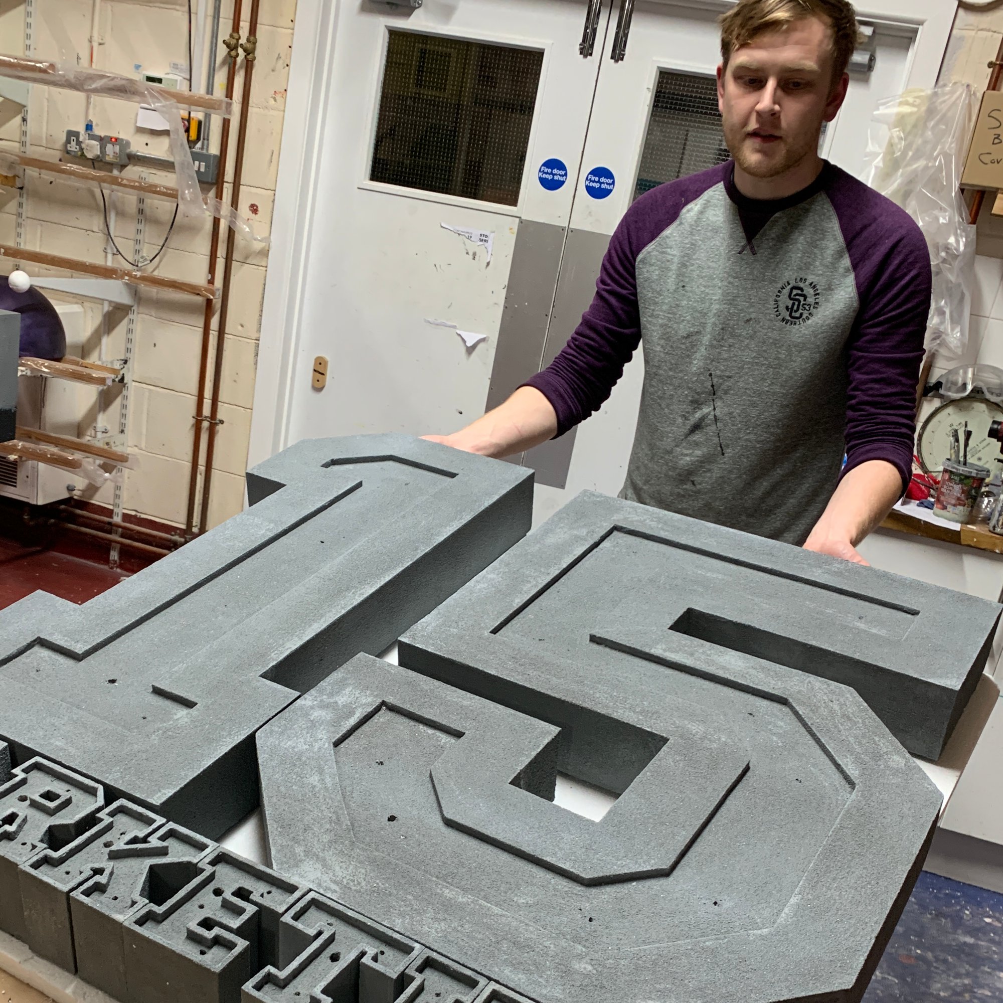 Most props are manufactured in polystyrene, allowing us to create large, lightweight forms efficiently. These can be coated or finished in a range of ways, including Jesmonite coatings for added durability and surface detail.