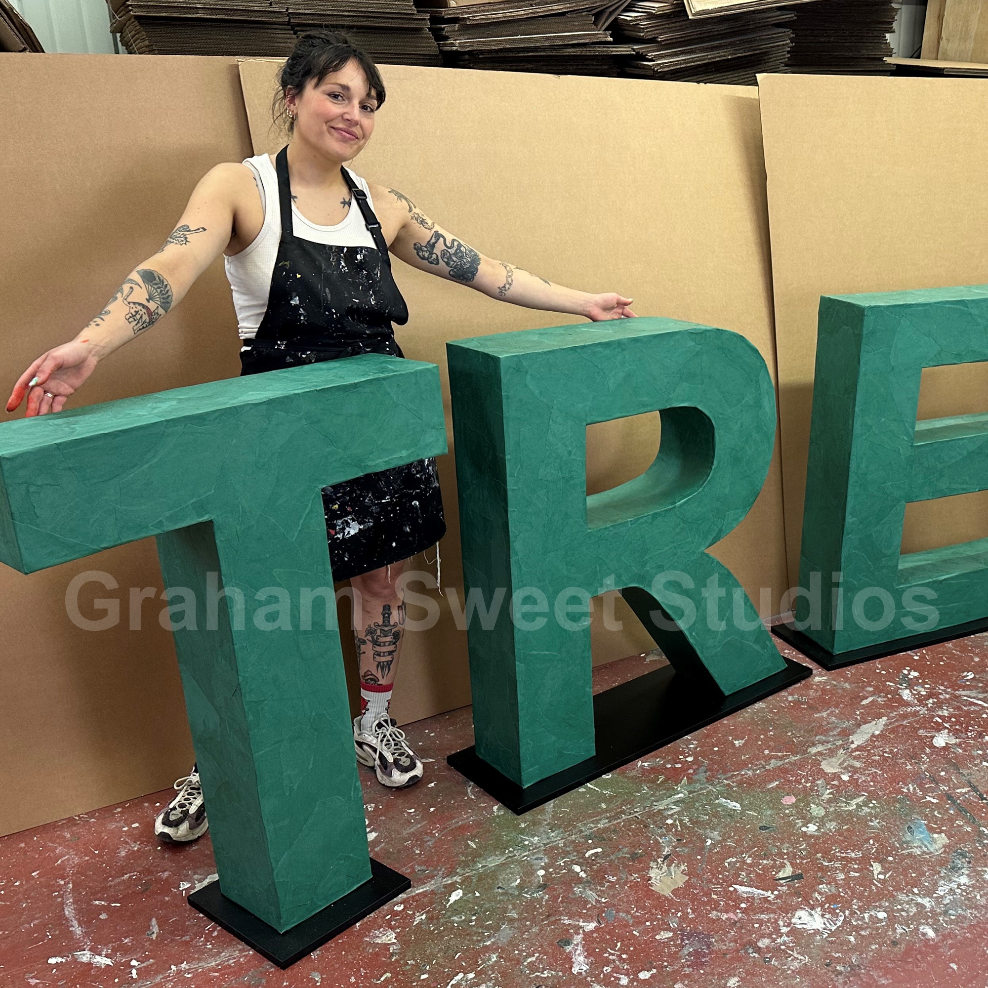 We also use mixed materials such as MDF and timber where additional structure is required. Alongside this, we offer a range of cardboard and papier-mâché 3D letters, and we are currently developing new paper-based model options.